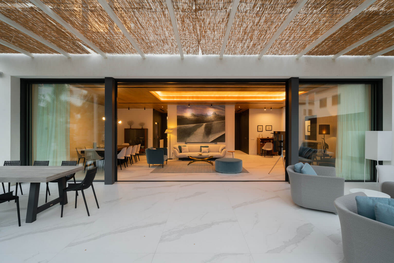 n esta casa, nos hemos encargado del diseño arquitectónico, del diseño interior, de la selección de todos los muebles y elementos de decoración, y también, del diseño del jardín. Por lo tanto, en este proyecto nos hemos encargado de todo el proceso: desde la selección del lugar para construir la casa, hasta la selección del mobiliario y la plantación del jardín. Y nos sentimos especialmente orgullosos del resultado.