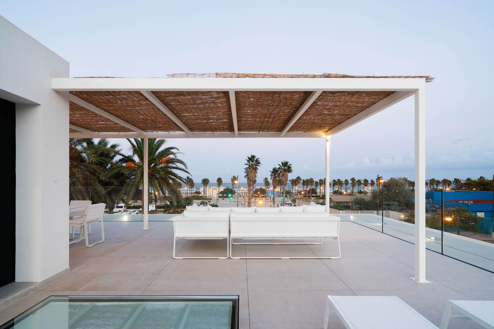 El proyecto consiste en dos casas conectadas por el jardín. La principal tiene hermosas vistas a la playa y al mar, y una gran terraza en la azotea con una pequeña piscina.